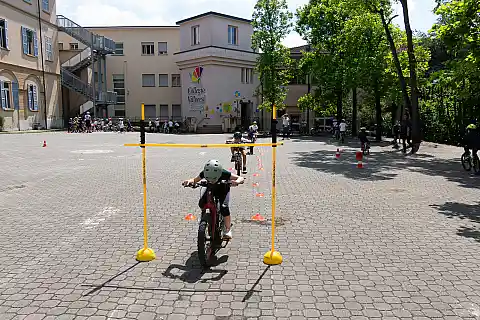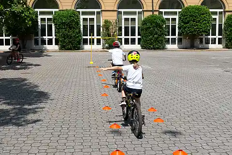 La parte pratica si è svolta venerdì 16 maggio, sempre all’interno della scuola, dove per due ore i bambini si sono messi alla prova in sella alle loro biciclette in un circuito allestito nel piazzale. Sotto la guida degli istruttori di Giretto, hanno simulato situazioni reali: incroci, precedenze, stop, svolte e attraversamenti pedonali. L’obiettivo era verificare quanto appreso e mettere in pratica le regole della circolazione in totale sicurezza.